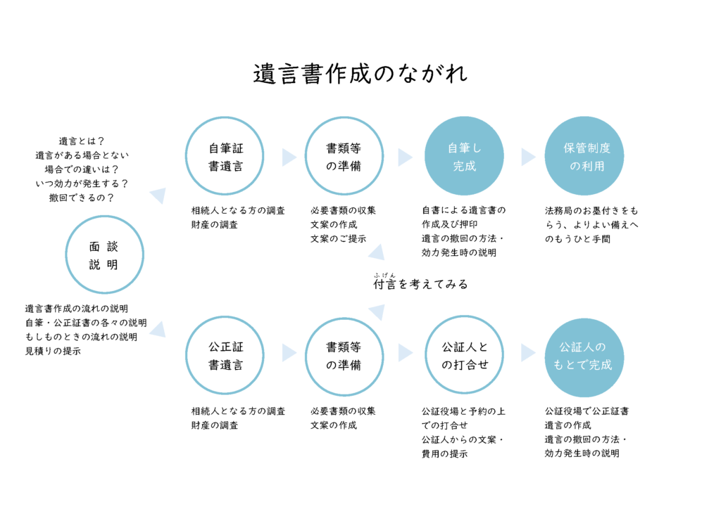 それら厳格な方式に則り、遺言書作成のお手伝いをいたします。